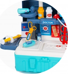 Setul se transformă ușor dintr-o valiză într-un spital mobil sau masă de doctor, permițând mai multe forme de joc.