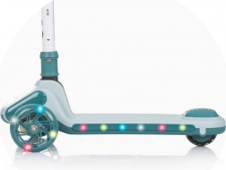 Un alt avantaj sunt mânerele din cauciuc anti-alunecare și platforma largă anti-alunecare, care garantează siguranța în timpul călătoriei. Trotineta este echipată și cu roți față și spate cu lumini LED, făcând călătoria mai atractivă.