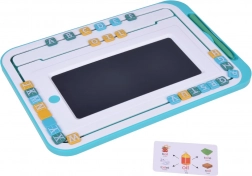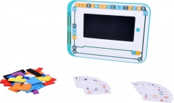 Setul include cuburi din lemn colorate, care pot fi așezate pe partea din spate a tabletei sau oriunde altundeva, la alegere.