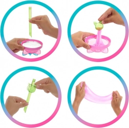 Ambalajul în formă de milkshake ascunde până la 8 surprize, inclusiv slime sclipitor și elastic pentru distracție senzorială și depozitarea accesoriilor.