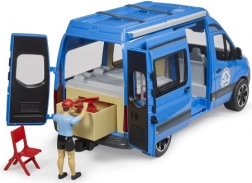 Pornește în aventură cu rulota detaliată BRUDER MB Sprinteruși rabatabile, ușă laterală culisantă, marchiză extensibilă și un interior complet echipat cu pat dublu și colț de bucătărie. Include figurina bworld și set de camping cu masă, scaune și veselă pentru joc realist. Fabricat din ABS de calitate în Germania.