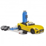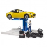 Acest set de joc bine gândit oferă copiilor o experiență autentică de service auto. Mecanicul ridică roadsterul pe platforma reglabilă pe înălțime, testează frânele pe dispozitivul conectat, iar rezultatul este afișat pe monitorul clar. Datorită noii construcții pentru schimbul roților, înlocuirea se face instant – inclusiv cu setul complet de anvelope de rezervă.