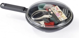 Acest set de vase versatil include o tigaie, farfurii, tacâmuri, cești și linguri. Este fabricat din plastic rezistent și este ideal pentru gătitul și servirea zilnică a meselor. Sunt disponibile două variante de culori stilate - negru și roșu, care adaugă stil bucătăriei dumneavoastră.
