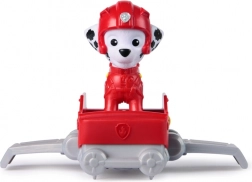 Marshall este pregătit de acțiune în hovercraftul său roșu, cu aripi rabatabile și detalii atent realizate. Fixează figurina în cockpit, deschide aripile și decolează în misiuni aeriene de salvare captivante, ca în serialul PAW Patrol.