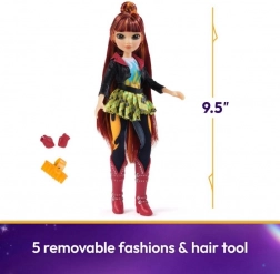 Intrați în lumea Academiei Unicorunților cu această păpușă de 23 cm înălțime, inspirată din serialul animat și cartea preferată. Păpușa Valentina este detaliată până la ultimul detaliu, iar personalitatea ei veselă se reflectă în părul ei roșu, portocaliu și galben, pe care îl puteți peria cu accesoriile incluse. Ea poartă o ținută elegantă de călărie cu o jachetă neagră, fustă cu carouri, pantaloni de călărie cu emblema Magia Focului, cizme roșii cu accesorii metalice și mănuși de călărie.