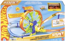 Trăiește adrenalina cu HOT WHEELS buclă turbo de curse. Prin rotirea manivelei pui în mișcare propulsorul care lansează mașinuța metalică la scara 1:64 prin buclă, viraje strânse și o zonă de carambol plină de tensiune – apoi înapoi la start pentru distracție fără sfârșit.