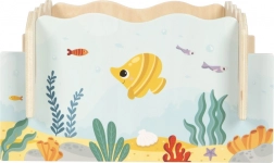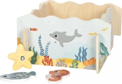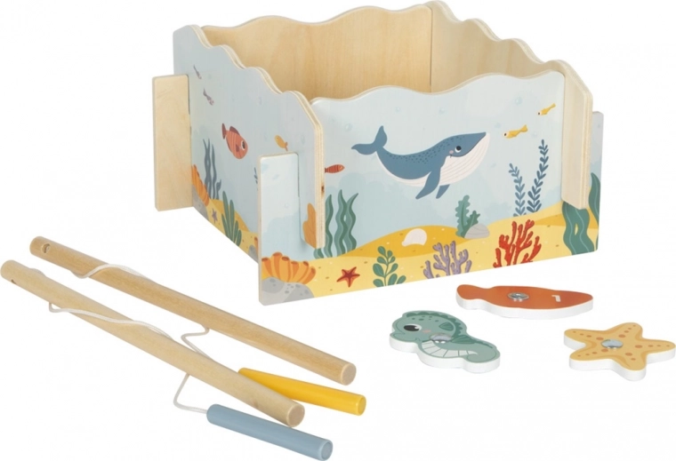 Acest joc magnetic din lemn, de calitate, cu tematică marină, este destinat pentru 1–2 jucători. Copiii, cu ajutorul undițelor magnetice, pescuiesc peștișori, căluți de mare sau stele de mare, îi întorc cu punctajul în sus și la final adună punctele obținute. Regulile simple, rundele scurte și culorile captivante fac din acest joc o alegere ideală pentru preșcolari.