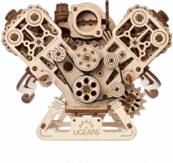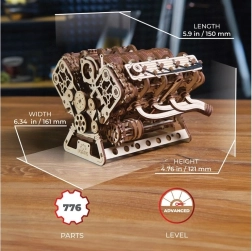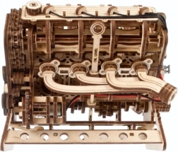 Modelul mecanic din lemn al motorului V8 simulează fidel funcționarea unui adevărat motor cu opt cilindri: opt cilindri cu mers ritmic al pistoanelor, 16 supape acționate de arbori cu came, distribuție cu lanț reglabil (32 de zale) și accesorii antrenate de o curea serpentinară. Datorită alimentării prin USB‑C sau rotirii manuale, te bucuri de mișcări mecanice realiste și înțelegi mai bine principiile motorului cu ardere internă.