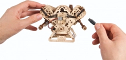 Modelul se asamblează treptat, de la blocul de cilindri la chiulase și distribuție, oferind o excelentă experiență educațională. Nu lipsesc detalii precum țevi de evacuare stilizate, bujii, baie de ulei, jojă de ulei și capace pentru fluide. Asamblarea nu necesită lipici sau unelte speciale – piesele mobile trebuie doar șlefuite ușor și unse cu ceară (sau un lubrifiant potrivit). Este inclus un ghid ilustrat detaliat în 11 limbi.