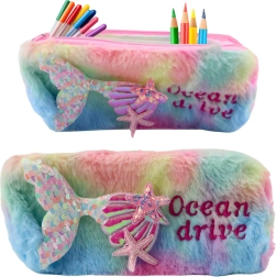 Penar de pluș cu motiv de sirenă în culori pastelate este un accesoriu ideal pentru fiecare copil care iubește sirenele și misterele lumii acvatice. Este moale, drăgălaș și perfect pentru depozitarea creioanelor, stilourilor și altor rechizite școlare.