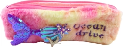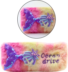 Un penar plusat unic proiectat pentru copii, care iubesc sirenele și marea! Penarul roz cu coadă violet, paiete și scoici este accesoriul ideal pentru necesitățile școlare.
