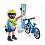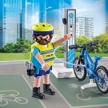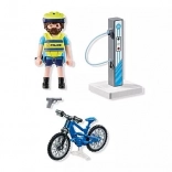 - Figurină polițist, bicicletă electrică, stație de încărcare/stativ, cască, vestă, echipament și accesorii