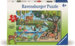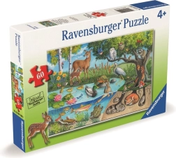 Cu acest puzzle Ravensburger, copiii se vor distra pe săturate și își vor exersa în același timp abilitățile. Ilustrația realizată de Ingrid Slyder prezintă lumea colorată a unui iaz forestier, unde se regăsesc diverse specii de animale – păsări, cerbi, bufnițe, ratoni, veverițe, pești și țestoase. Sub suprafață, dezvăluie viețile interesante ale iepurilor în vizuini și o vulpe odihnindu-se.