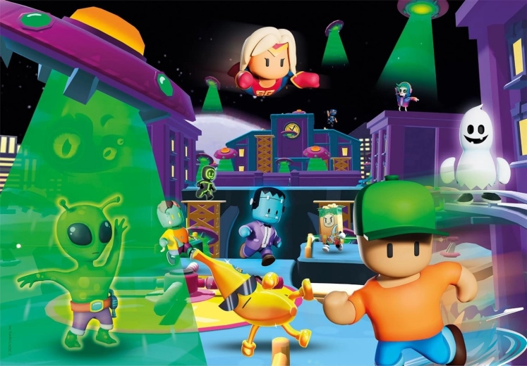 Descoperă culori vii, tipar precis și o execuție de calitate, datorită cărora piesele se potrivesc perfect. Puzzle-ul cu tematica STUMBLE GUYS este o alegere excelentă pentru relaxare, antrenarea concentrării și dezvoltarea motricității fine.