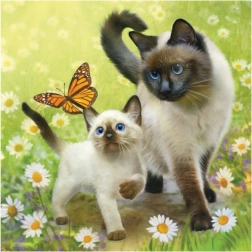 Scena fermecătoare cu pisici și un fluturaș îi învață pe copii să observe detaliile și culorile în timpul asamblării.