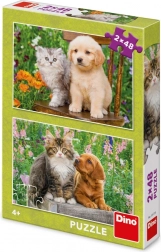 Set dublu de puzzle-uri pentru copii cu motive drăgălașe de cățeluși și pisicuțe, oferind două puzzle-uri a câte 48 de piese. Ideal pentru copii de la 4 ani – în timpul asamblării își exersează motricitatea fină, imaginația și capacitatea de concentrare. Carton de calitate, sigur pentru sănătate, iar producția cehă garantează distracție sigură și plăcută.