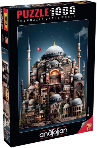 Acest puzzle de la Anatolian oferă o privire detaliată asupra frumuseților arhitecturale ale Hagiei Sofia, incluzând ornamente, cupole și minarete. Este mai mult decât un simplu puzzle – după asamblare devine un accesoriu estetic pentru orice locuință. Datorită dimensiunilor de 66 x 48 cm, este potrivit și pentru înrămare.