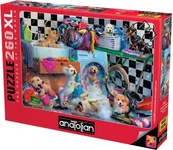 Scufundă-te în lumea jocurilor și a distracției cu acest puzzle uimitor ce prezintă căței adorabili. Puzzle-ul asamblat cu dimensiuni de 48 x 33 cm va oferi ore de bucurie și relaxare.