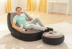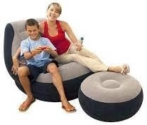 Fotoliu gonflabil confortabil cu taburet, ideal pentru utilizare atât în interior, cât și în exterior. Permite momente de relaxare în confort maxim.
