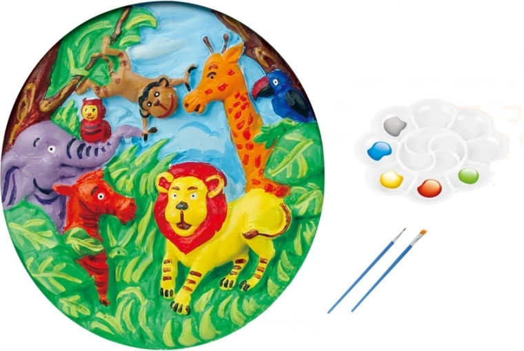 Set creativ pentru micii artiști cu motive de animale sălbatice, în care copiii își pictează propria imagine 3D din ipsos. Susține creativitatea și motricitatea fină, îi învață amestecarea culorilor și oferă ore întregi de creație distractivă.