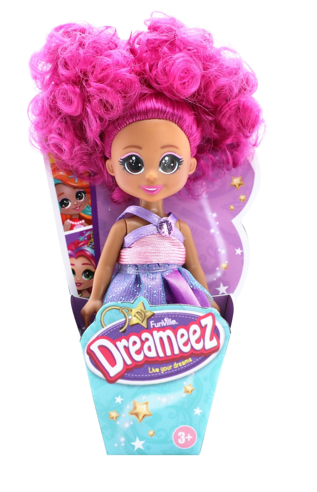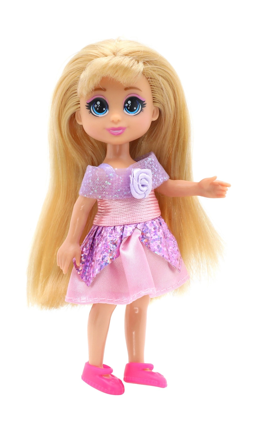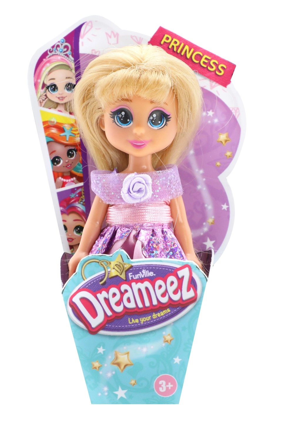 Dreameez mini prințesă în cornet este însoțitorul ideal pentru micii iubitori de povești. Această păpușă adorabilă măsoară aproximativ 12 cm și este îmbrăcată într-o ținută elegantă de prințesă.
