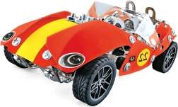 Construiește-ți propria mașină de curse retro din 230 de piese! Acest set de construcție din metal, cu accesorii din plastic, se asamblează cu ajutorul șuruburilor și piulițelor pentru o structură stabilă și realistă. Ideal pentru pasionații de tehnică și modelism, oferă o construcție simplă, distractivă și totodată plină de provocări, care dezvoltă abilitățile tehnice și răbdarea.