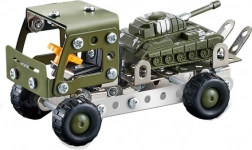Acest cofraj metalic vă permite să realizați o mașină militară unică cu tanc. Setul conține o combinație de piese metalice și accesorii din plastic, care sunt unite cu ajutorul șuruburilor și piulițelor. Este proiectat astfel încât construcția să fie simplă, distractivă și totodată provocatoare: