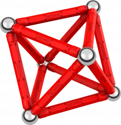 Descoperiți lumea construcțiilor cu setul magnetic Geomag, care permite construirea ușoară a diferitelor forme și corpuri geometrice. Pachetul include 12 bețe magnetice roșii și 12 bile de oțel.