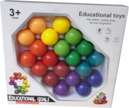 Setul de bile colorate conectabile funcționează ca o construcție distractivă și educativă. Fiecare bilă se rotește liber și se conectează ușor cu celelalte, astfel încât copiii pot crea forme originale, lanțuri și modele 3D. Jocul antrenează natural concentrarea și gândirea logică, dezvoltând totodată imaginația.