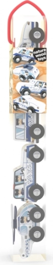 Descoperă bucuria jocului cu mașini de poliție fabricate din lemn natural. Această jucărie stimulează imaginația copiilor și susține jocul de rol și povestirea.