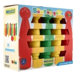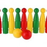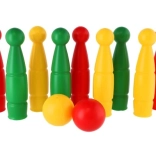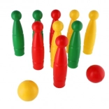 Acest set colorat de popice este excelent pentru utilizare interioară și exterioară. Copiii se vor distra construind și dărâmând popicele, îmbunătățindu-și astfel coordonarea și precizia. Setul include: