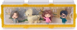 Fiecare figurină este detaliat lucrată, inclusiv cicatricea iconică a lui Harry și bagheta Hermioninei.