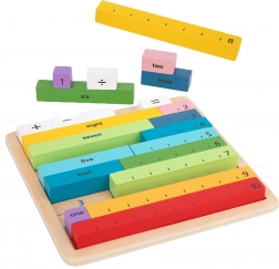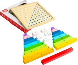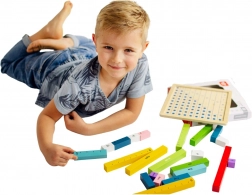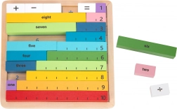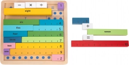 Acest set educativ combină piese din lemn colorate cu cifre și semne cu o placă practică din lemn. Copiii înțeleg rapid relațiile dintre cifre și operațiile aritmetice simple datorită compunerii de exemple și demonstrației vizuale.