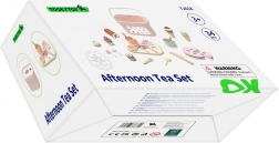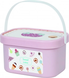 În set se regăsește și veselă adorabilă – cănici, lingurițe, furculițe și cuțit – și o cutie robustă din plastic cu mâner pentru depozitare și transport ușor. Culorile pastel și piesele netede, sigure pentru copii, îi invită la joacă individuală sau în grup.