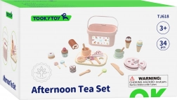 Acest set de calitate din lemn cu dulciuri oferă totul pentru un ceai de după-amiază plin de stil: tort de feliat, ruladă, gogoașă, biscuiți, macarons și înghețată. Copiii își antrenează motricitatea fină când taie porții și aranjează pe tavă, își dezvoltă imaginația și comunicarea în jocul de cofetărie sau la ceai.