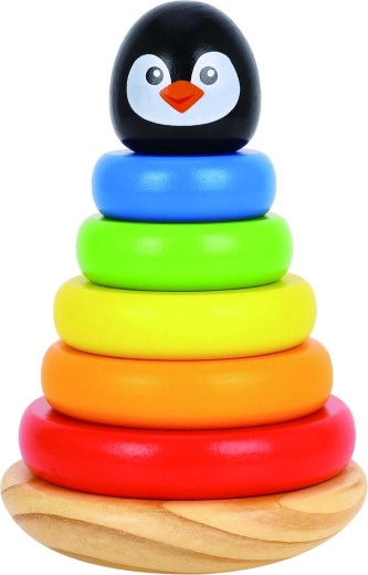 Acest turn de stivuire din lemn, cu culori vesele și motiv de pinguin, este ideal pentru copiii mai mici. În pachet veți găsi o bază stabilă cu un țăruș și mai multe inele colorate din lemn, din care copiii își vor construi propriul turn. Jocul dezvoltă simțurile, susține concentrarea și aduce bucurie la fiecare reușită.