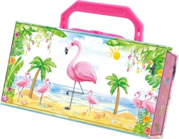 Păstrează-ți comorile în frumoasa cutie de bijuterii sub formă de valiză cu model Flamingo. Un accesoriu ideal pentru micile prințese.