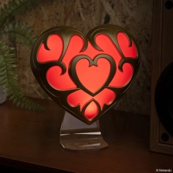 Fă-ți ție sau celor dragi o bucurie cu acest accesoriu original din universul THE LEGEND OF ZELDA. Motivul în formă de inimă, cu detalii aurii, și suportul transparent oferă biroului sau raftului tău o notă elegantă, cu aer de gaming. Iluminarea LED roșie creează o strălucire delicată, ideală pentru relaxarea de seară și pentru expunerea colecției.