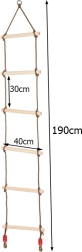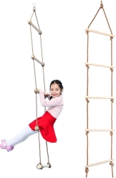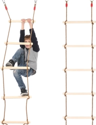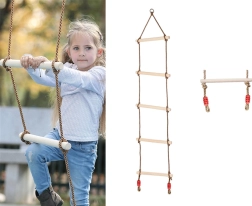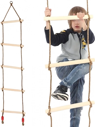 Scara de frânghie este o alegere excelentă pentru joaca activă în aer liber. Treptele din lemn neted, fără muchii ascuțite, oferă o priză confortabilă și siguranță la cățărare. Frânghiile groase împletite, terminate cu noduri de siguranță, mențin scara stabilă chiar și în timpul utilizării intense.