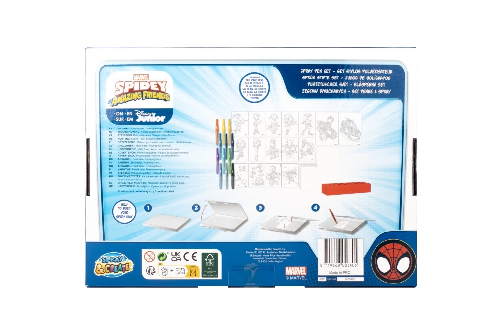 Descoperă lumea creativă a picturii cu setul de markere spray Spidey! Acest set complet este ideal pentru toți micii artiști care își doresc să creeze imagini uimitoare folosind markere spray.