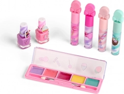 Setul conține cinci farduri de pleoape cu aplicator, patru glossuri de buze, două oje și două inele ca accesorii stilate. Grozav ca dar, pentru petreceri și pentru joaca de zi cu zi.