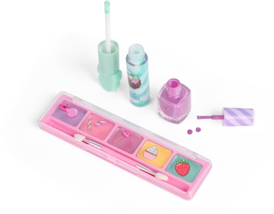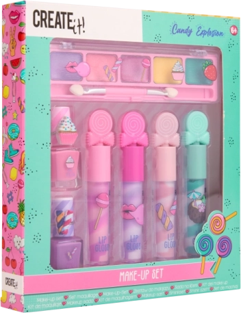 Setul de machiaj Candy CREATE IT! aduce distracție și culoare în machiajul pentru copii. Totul este ascuns într-un ambalaj atractiv, inspirat de dulciuri, care va încânta micile cochete. Datorită paletei variate de nuanțe, copiii pot crea cu ușurință look-uri discrete sau mai îndrăznețe și își dezvoltă creativitatea.