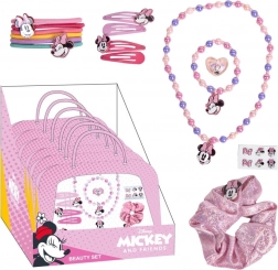Răsfățați micile cochete cu un set stilat de bijuterii și accesorii de păr cu motivul DISNEY MINNIE. În poșeta practică vor găsi inel, brățară, colier și un set bogat pentru păr, inclusiv elasticuri, agrafe și amuzante autocolante. Excelent pentru joaca zilnică de-a prințesele, pentru decorarea coafurii și ca cadou ideal pentru iubitoarele lui Minnie.