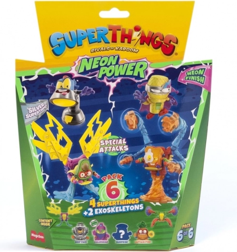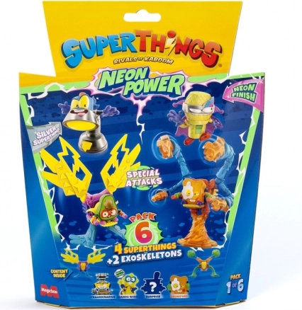 Intră în orașul Kaboom și extinde-ți colecția cu SuperThings: Neon Power! Fiecare pachet aduce o combinație de 4 figurine eroice (sau negative) și 2 exoschelete care oferă forță și stil bătăliilor tale. Designul neon garantează că personajele tale vor ieși în evidență în orice acțiune.