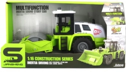 Acest compactor verde, realizat cu atenție la detalii, îi va încânta pe micii constructori prin aspectul realist și funcțiile care aduc la viață orice șantier de joacă. Datorită propulsiei inerțiale (mecanism cu inerție), vehiculul pornește cu o ușoară împingere, iar efectele luminoase și sonore susțin atmosfera unei munci reale pe șosea.