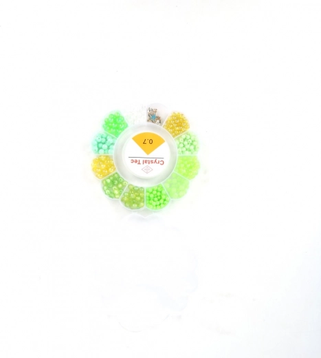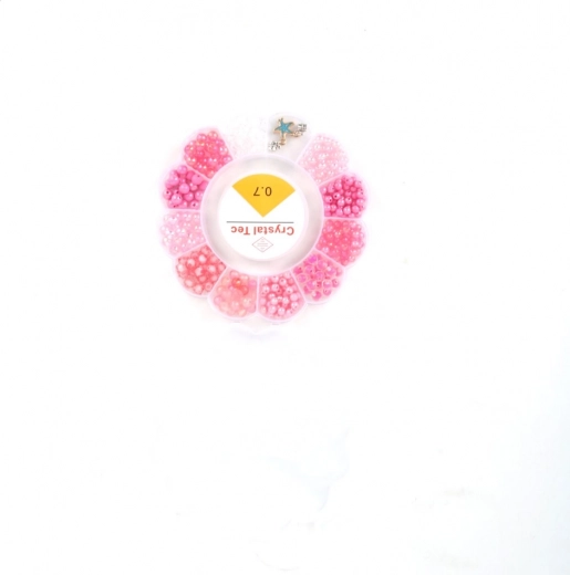 Distribuitorul circular cu compartimente păstrează mărgelele sortate după culori și dimensiuni, astfel încât ai totul la îndemână și creația decurge fără efort.