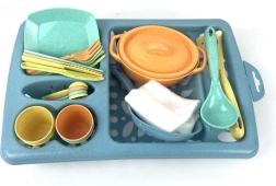 Aceast set ecologic de veselă oferă o oportunitate excelentă pentru copii de a-și dezvolta creativitatea și imaginația. Este fabricat din material de grâu, care este prietenos cu mediul și sigur pentru copii. Cu acest set, copiii pot simula propriile lor abilități culinare și de a lua masa.