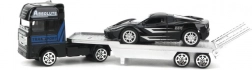 Mecanismul pull-back asigură un start rapid fără baterii. Copiii trag ușor modelul înapoi și urmăresc cum camionul de tractare intră în acțiune.