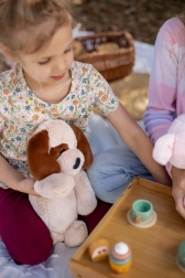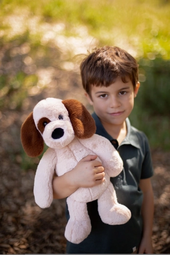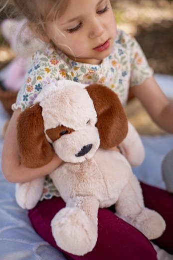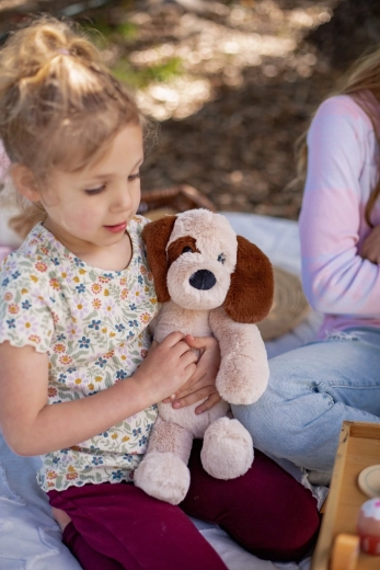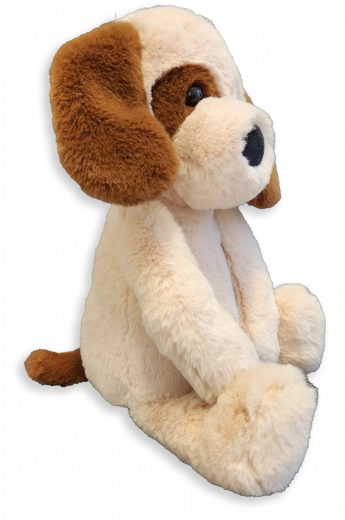 Cu o lungime de 41 cm, acest câine de pluș este ideal pentru ca cei mici să-l ia în pat sau în călătorii.