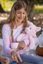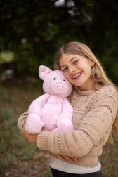 Cu detalii precum urechiușe și o expresie zâmbitoare, acest purceluș este irezistibil pentru orice copil.